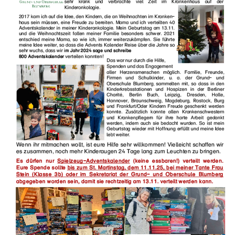 ein weiteres Jahr neigt sich dem Ende zu, und wir stehen vor der schönen und besinnlichen Adventszeit. Auch in diesem Jahr möchten wir eine Herzensangelegenheit unterstützen: die Adven…